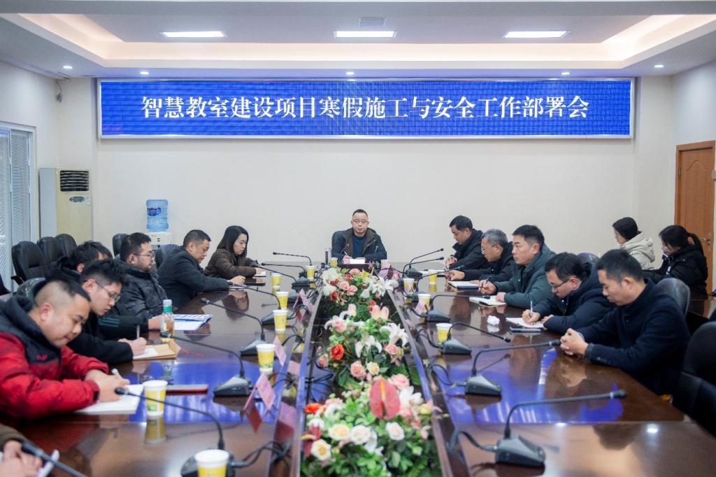 为保障智慧教室建设项目在寒假期间安全、有序推进,确保开学前顺利投入使用,1月19日下午,学校召开智慧教室建设项目寒假施工与安全工作部署会。副校长陈光平主持会议并讲话,国有资产管理处、教务处、保卫处、后勤服务处、信息化建设与服务中心相关负责人及智慧教室施工方负责人参加会议。